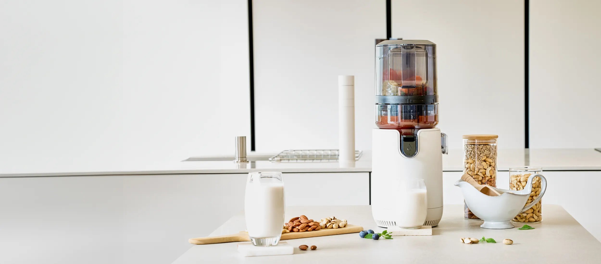Designed for modern kitchens, the E50ST’s sleek, Mushroom White finish blends effortlessly into any space while maximizing countertop efficiency, and storing your juicer has been easier.