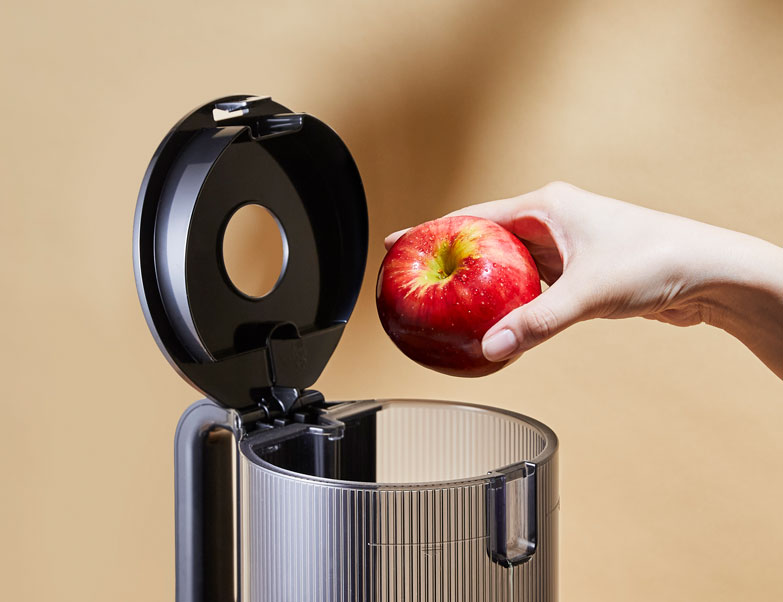 لا مزيد من المتاعب مع التقطيع أو إدخال قطع صغيرة في عصارة الفاكهة الخاصة بك! تتميز عصارة الفاكهة Hurom H400 بنظام تغذية ذاتي