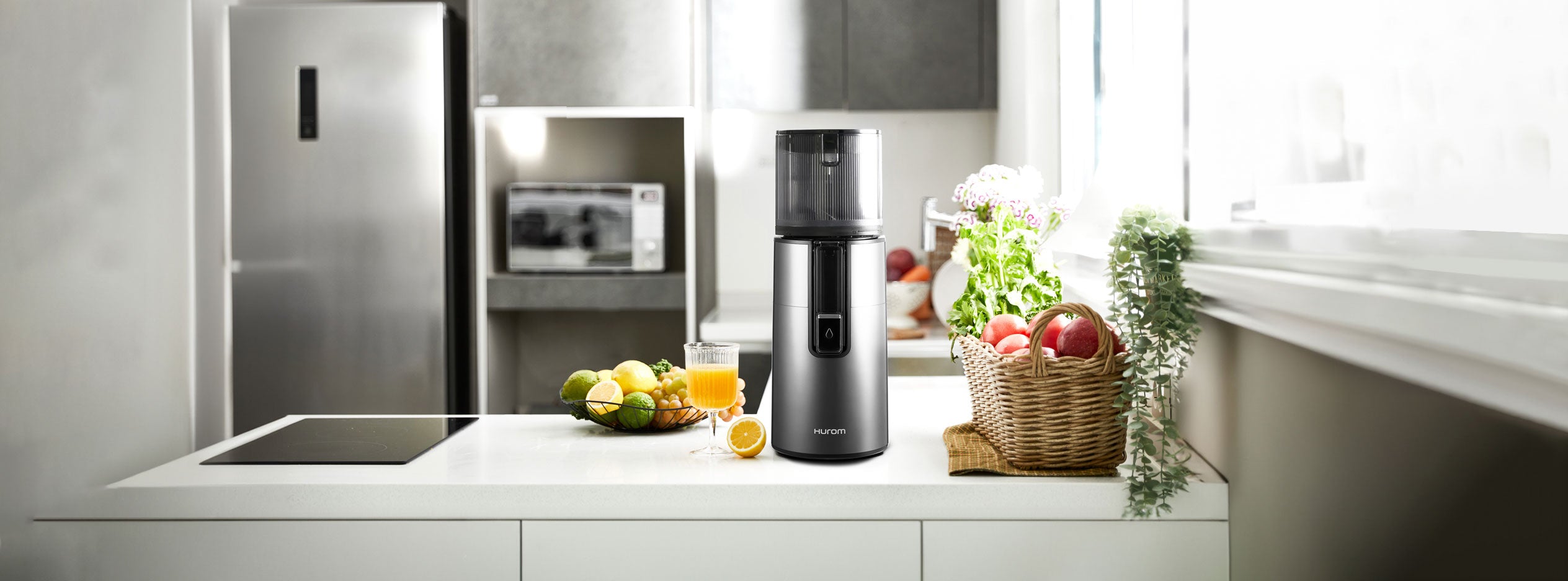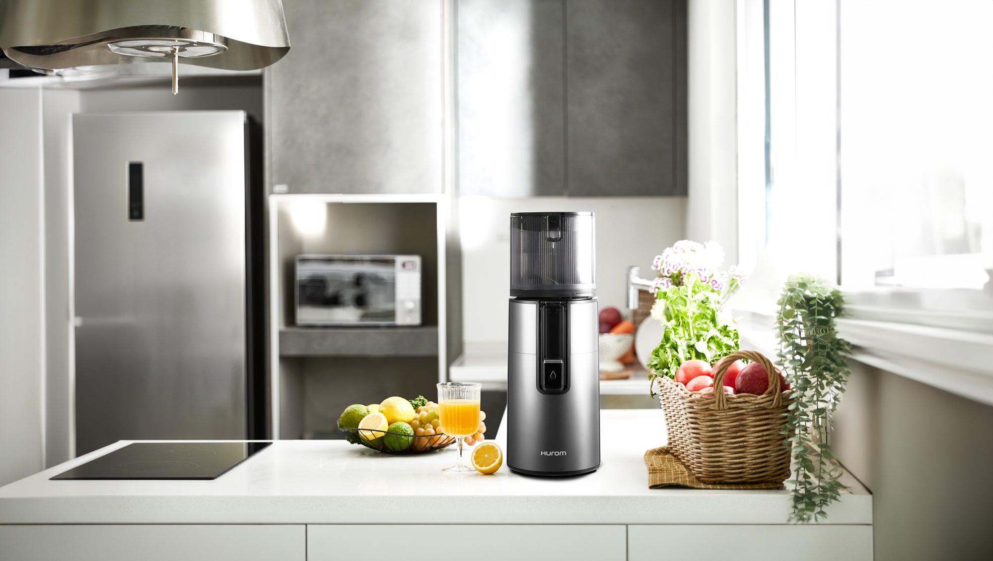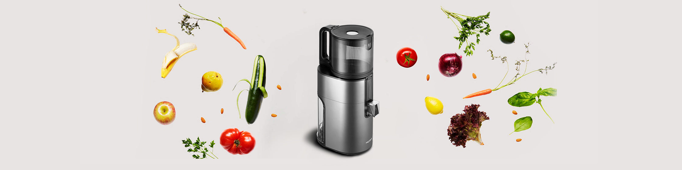عصارة Hurom H400 سهلة التنظيف وبطيئة، باللون الرمادي التيتانيوم - عصير فعال بدون استخدام اليدين لأسلوب حياة أكثر صحة